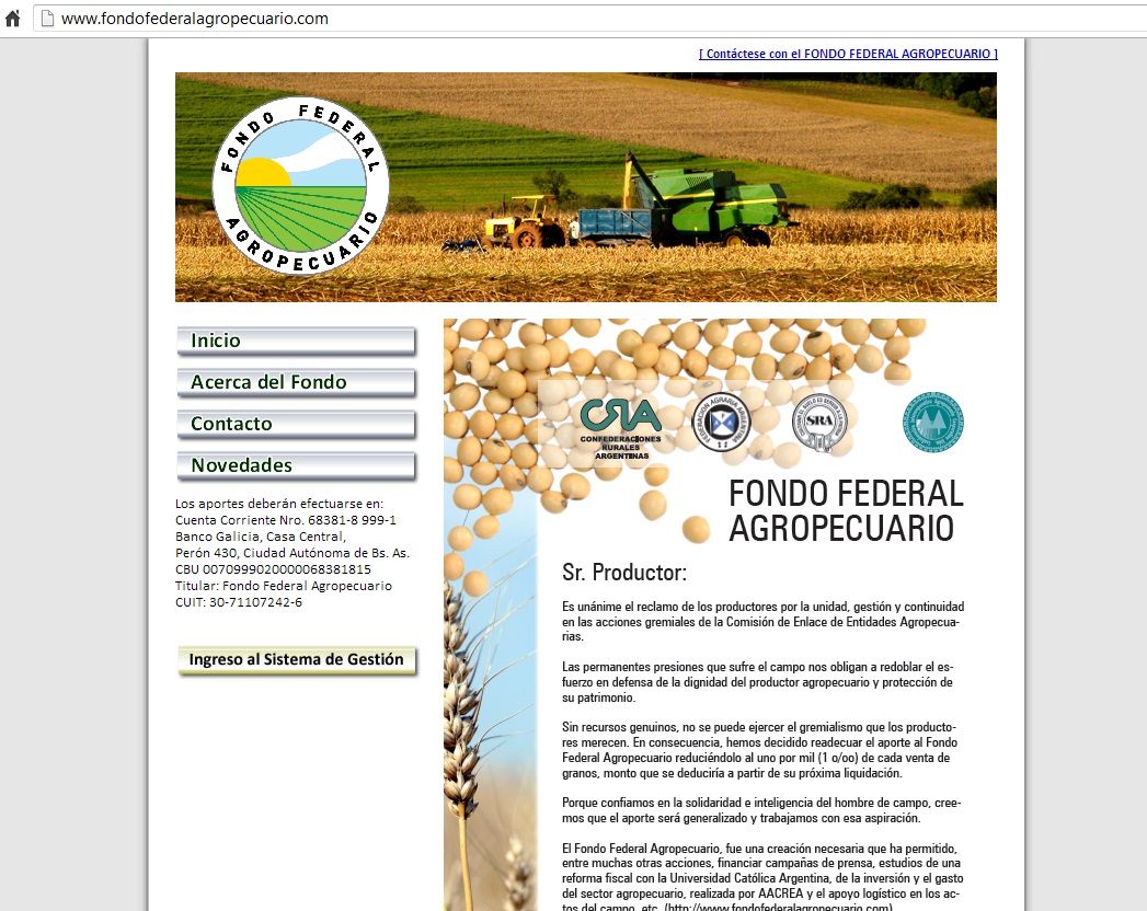 Aclaración sitio WEB Fondo Federal Agropecuario. FEDERACIÓN DE ACOPIADORES