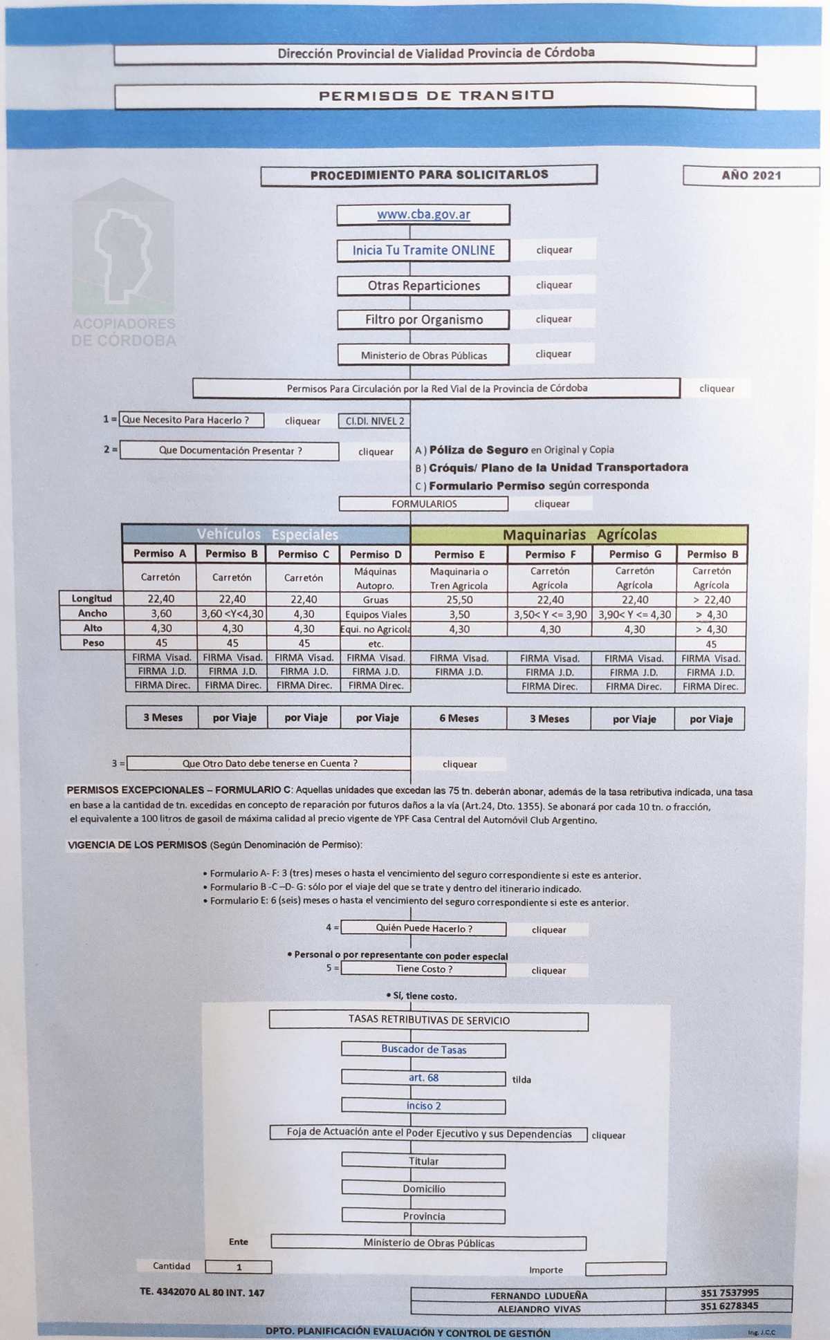Adjuntamos el Instructivo sobre la carga y solicitud del trámite para solicitar Permisos de transito especial del Departamento Provincial de Vialidad de la provincia de Córdoba.