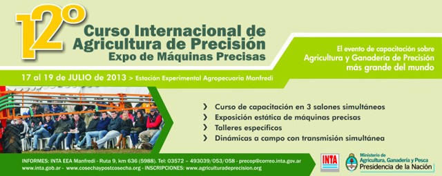 Síntesis: Hasta el próximo miércoles 10 de julio se recibirán inscripciones anticipadas para el 12° Curso Internacional de Agricultura de Precisión y Expo de Máquinas Precisas que se llevará a cabo en el INTA Manfredi del 17 al 19 de julio. Hasta esa fecha el arancel general gozará de un descuento del 25%.