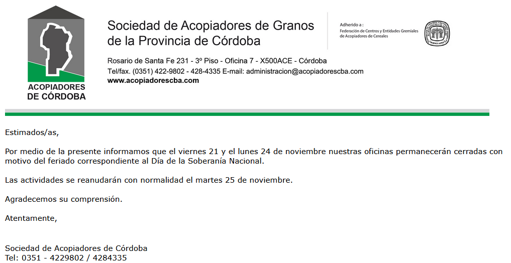 Adherida a Federación de Centros y Entidades Gremiales de Acopiadores de Cereales