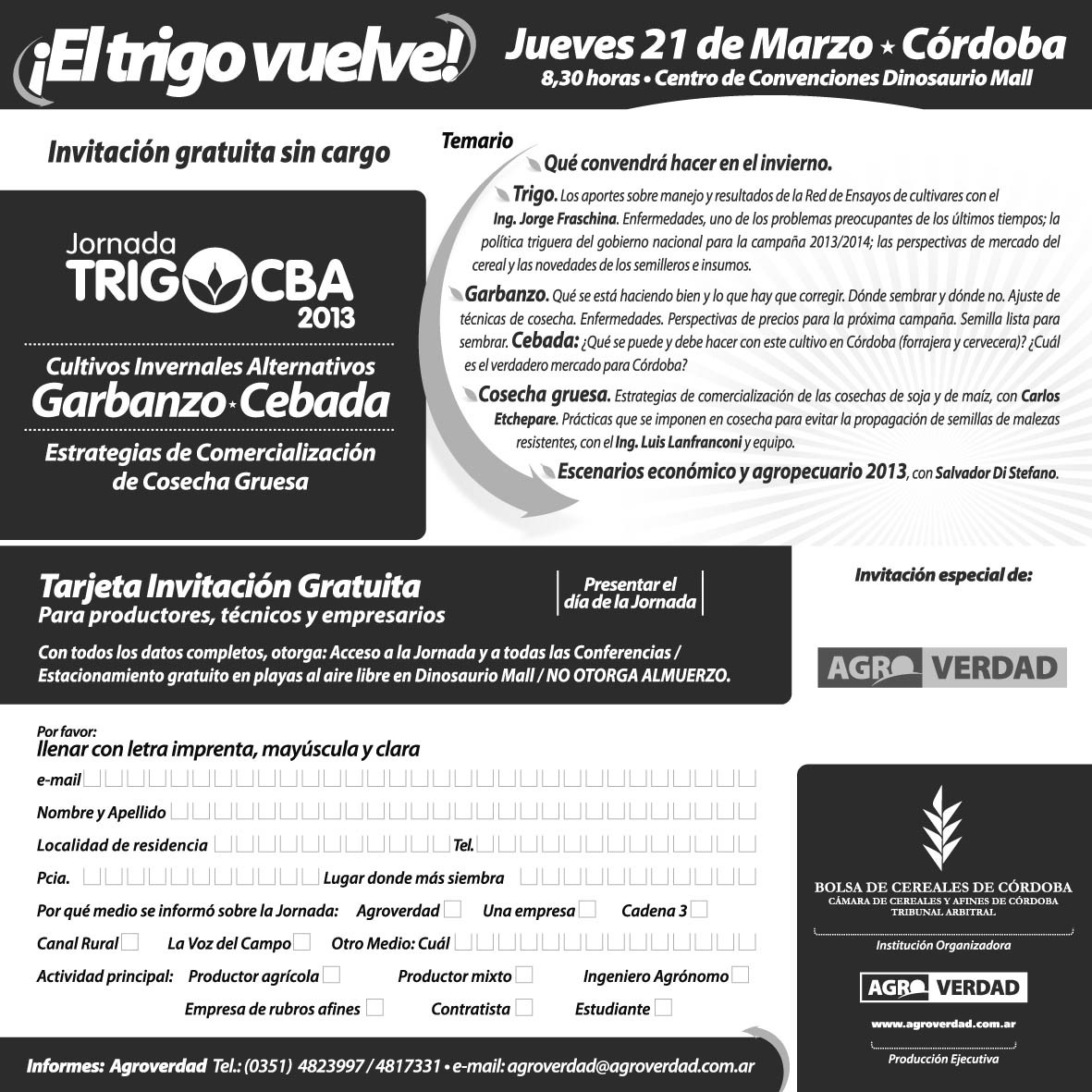 Jornada Trigo Córdoba 2013 + Cultivos Invernales Alternativos (Garbanzo, Cebada) + Estrategias de Comercialización de Cosecha Gruesa