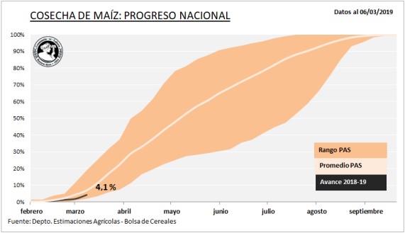 Se espera que a medida que baje la humedad de los granos las tareas se generalicen. Hacia las zonas Oeste de Buenos Aires-Norte de La Pampa, Cuenca del Salado y el Centro de Buenos Aires, los cuadros tardíos muestras signos del efecto de las heladas registradas a finales de febrero.