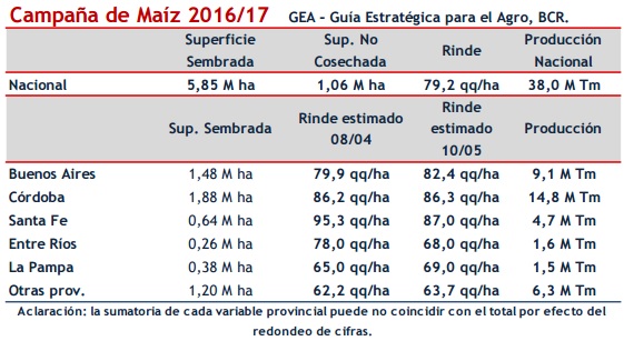 La Bolsa de Rosario prevé una zafra maicera de 38 millones de toneladas, 26 por ciento arriba de las 30,1 millones de la campaña previa; mientras que la Bolsa porteña proyecta una suba del 40 por ciento, de 28 a 39 millones (sólo contemplan granos con destino comercial).