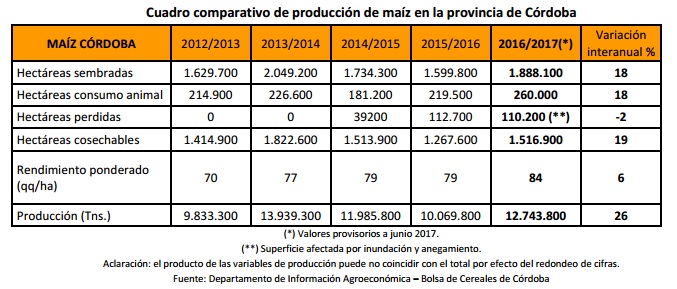 La recolección de maíz, como es usual, todavía tiene varias semanas hasta su finalización. A nivel nacional, el área cosechada se ubica entre 45 y 52 por ciento, mientras que en Córdoba es de apenas 26 por ciento, ya que el grueso de lo sembrado fue de fechas tardías.