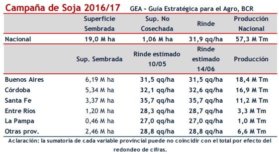 En cambio, a nivel nacional, las Bolsas proyectan un mayor aporte de toneladas de la oleaginosa: la de Rosario mejoró su pronóstico hasta 57,3 millones de toneladas, 3,6 por ciento más que los 55,3 millones de la zafra anterior; y la de Buenos Aires lo mantuvo en 57,5 millones, 2,6 por ciento por encima de su cálculo 2015/16 que fue de 56 millones.
