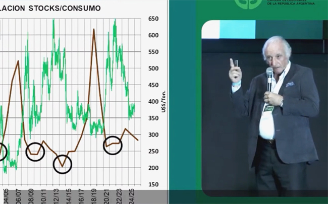 “La soja podría alcanzar valores cercanos a los US$500 dólares a principios del año próximo”, estimó el analista Enrique Erize de la Consultora Novitas durante su disertación en la reciente Jornada de Actualización Técnica de Legumbres organizada por CLERA para celebrar su 50° aniversario. AGROVERDAD - 10/11/2025