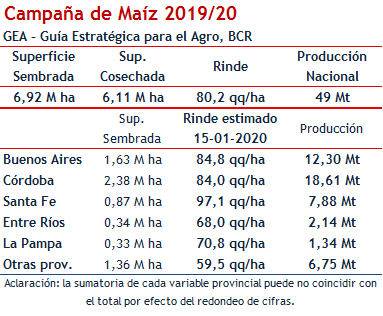 "Será la segunda mejor campaña maicera de Argentina", destaca la entidad rosarina. "Las recientes lluvias afirman una supercampaña de 49 millones de toneladas para el maíz 2019/20", agrega.