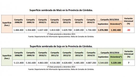 La siembra de maíz en la provincia de Córdoba para la presente campaña sería finalmente de 1,4 millones de hectáreas, lo que significa un recorte del 20 por ciento en comparación con la 2014/2015, cuando llegó a 1,7 millones, según la Bolsa de Cereales de Córdoba.