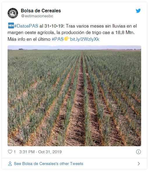 La primera señal de alerta es el impacto que el clima, fundamentalmente la falta de agua, ha tenido en la producción de trigo: la Bolsa de Cereales de Buenos Aires, que a principios de la campaña estimaba 21 millones de toneladas del cereal, ahora proyecta 18,8 millones.