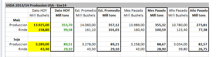 En su reporte de Oferta y Demanda mensual, el Departamento de Agricultura de los Estados Unidos (USDA, por sus siglas en inglés) informó una baja muy importante en los stocks trimestrales de maíz norteamericano al 1° de diciembre de 2013 (-9,24 M/Tns., quedando en 264,84 M/Tns.), al tiempo que para Argentina también marcó una baja, aunque menor, de 1 millón de toneladas (M/Tns.), pasando la producción total de 26 M/Tns a 25 M/Tns.