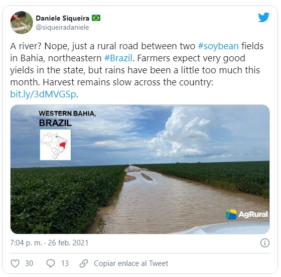 El programa de embarques de Brasil muestra 19 millones de toneladas para los próximos 45 días, lo que llama la atención por el retraso en la cosecha.