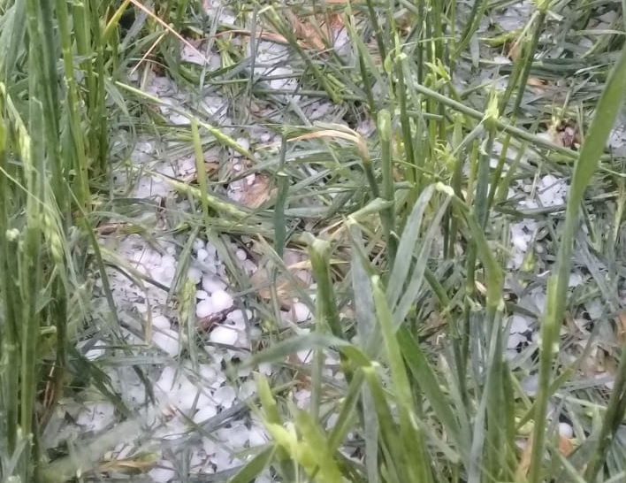En este contexto, algunos campos resultaron con daños en algunos casos totales. Principalmente, lotes de trigo que quedaron destrozados por la piedra que cubrió el suelo de manera total, al punto de que parecía nieve.