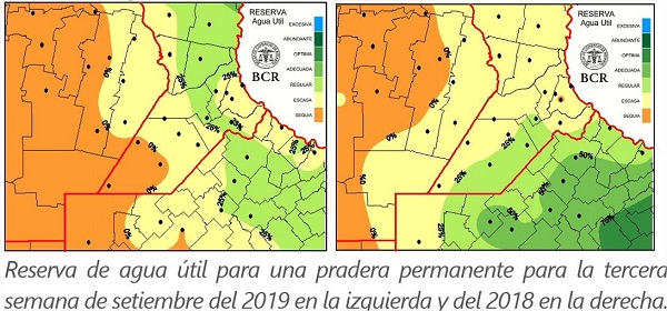 "Para setiembre, las estadísticas de los últimos 100 años señalan 60 a 40 mm, de este a oeste, para la región. Si no llueve, el oeste cerraría el mes con 5 a 15 mm y el este con 10 a 45 mm".