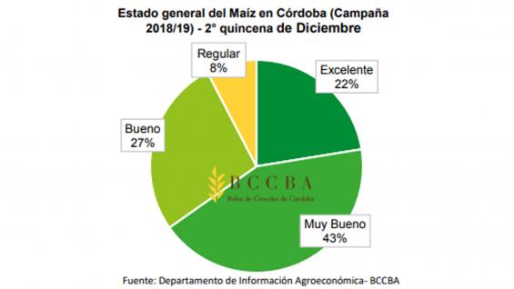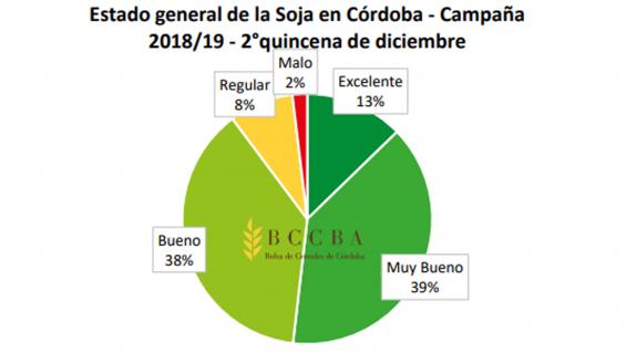 El 92 por ciento de la superficie está de buena a excelente, presentándose estados regulares en los departamentos Tercero arriba, Río Cuarto, Juárez Celman y General Roca por falta de precipitaciones y temperaturas elevadas. La Bolsa aclaró, de todos modos, que la información fue relevada previa a las precipitaciones del 29 de diciembre y 6 de enero.
