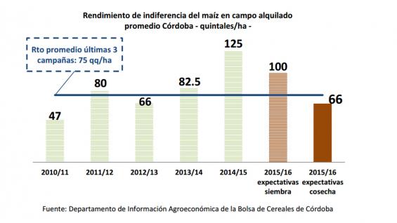 En maíz, los rendimientos de indiferencia a nivel provincial se redujeron 35 por ciento en promedio.
