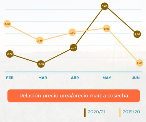 En este sentido, repasó que en 2019 los suelos estaban muy abastecidos de humedad y que el precio del maíz a cosecha cotizaba un 18 % por encima del precio del futuro actual para 2021. Del otro lado, el precio del fertilizante nitrogenado (clave en el planteo del maíz), la urea, cayó un 13 % por la baja del petróleo.