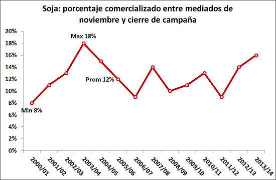 b) Riesgo climático: si bien las expectativas a cosecha son favorables, hay temor a que surjan problemas productivos en la región, lo que contribuiría a dar firmeza a los valores de mercado. La variable más crítica es el potencial de pérdida de superficie por anegamientos o imposibilidad de sembrar. Por prudencia, aun manteniéndose los precios actuales parte del stock disponible esperará un tiempo antes de ingresar al circuito comercial.