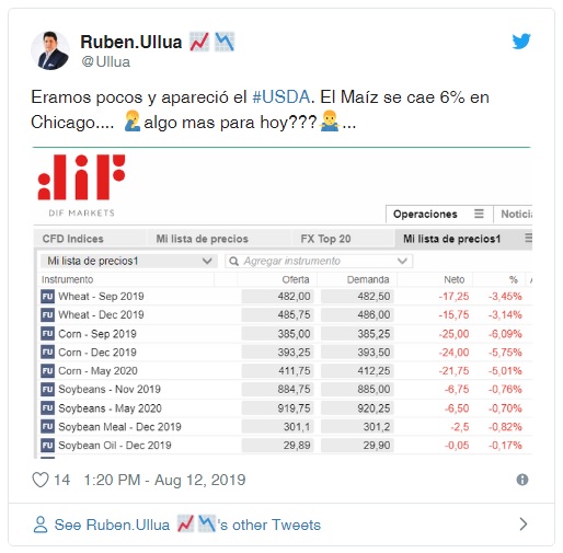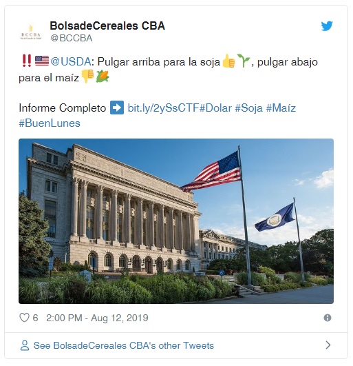 Según la entidad bursátil, el empuje bajista vino porque el organismo norteamericano elevó su proyección de cosecha de maíz en 700 mil toneladas con respecto al reporte de julio, por lo que tanto la producción final como los stocks son muy superiores a lo que esperaba el mercado.