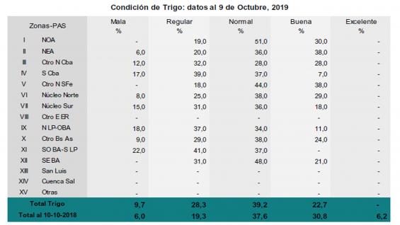 En el relevamiento sobre estado y condición de cultivos que complementa al PAS, la Bolsa porteña advierte que ya el 38 por ciento del trigo nacional está entre regular y malo. En Córdoba, la situación es peor que el promedio: en el centro-norte, el 44 por ciento está dentro de este rango; en el sur, más de la mitad de los lotes muestran condiciones negativas.