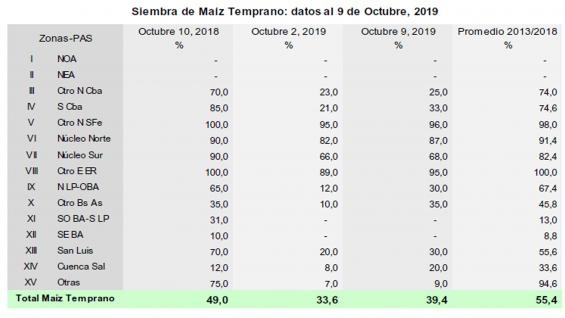 En lo que respecta al maíz, el factor fundamental es el atraso en la siembra de los híbridos tempranos, que a nivel nacional es de 10 puntos porcentuales pero en Córdoba trepa a 37,5 puntos respecto al año pasado.