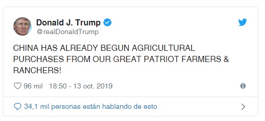 En lo que va del año China habría comprado cerca de 20 millones de toneladas de soja, 700 mil toneladas de carne de cerdo y 700 mil toneladas de sorgo.