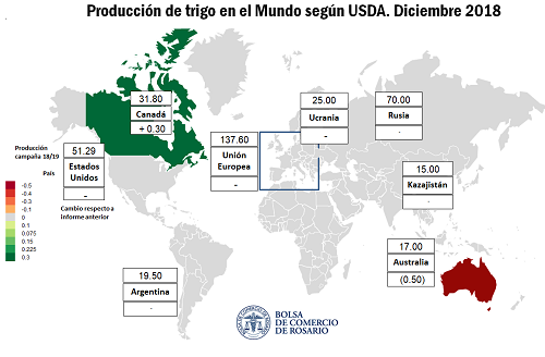 El panorama del trigo a nivel internacional también ofrece apoyo al precio del trigo, a pesar de un escenario bajista para el precio tanto del maíz como la soja que se vieron impactados por la guerra comercial de EE.UU y China. Para el caso particular de Argentina, el trigo recibe un apoyo adicional debido a que Australia tuvo una campaña muy mala de trigo como consecuencia de muy bajas precipitaciones en el área Este. En su último informe, el Departamento de Agricultura de los Estados Unidos (USDA, por sus siglas en inglés) volvió a recortar la previsión de cosecha de este país en 0,5 Mt respecto a su informe anterior, a 17 Mt. Será así la primera vez que la producción argentina supere a la australiana en una década.