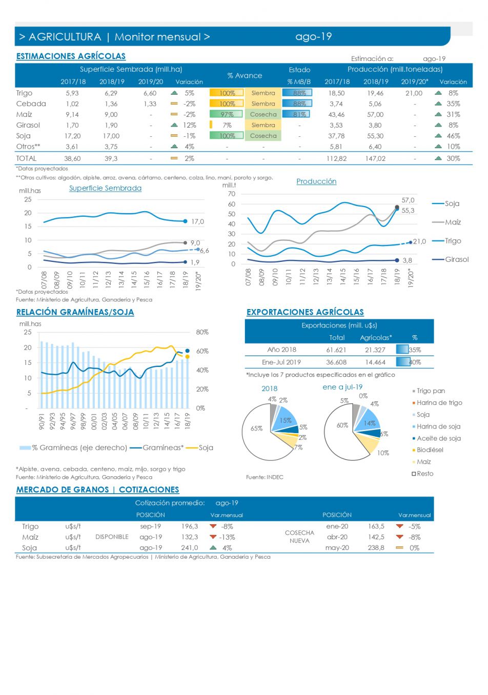 Así lo señala el Monitor de Estimaciones Agrícolas del mes de agosto, que ofrece información oficial resumida de las principales variables productivas y de mercado.