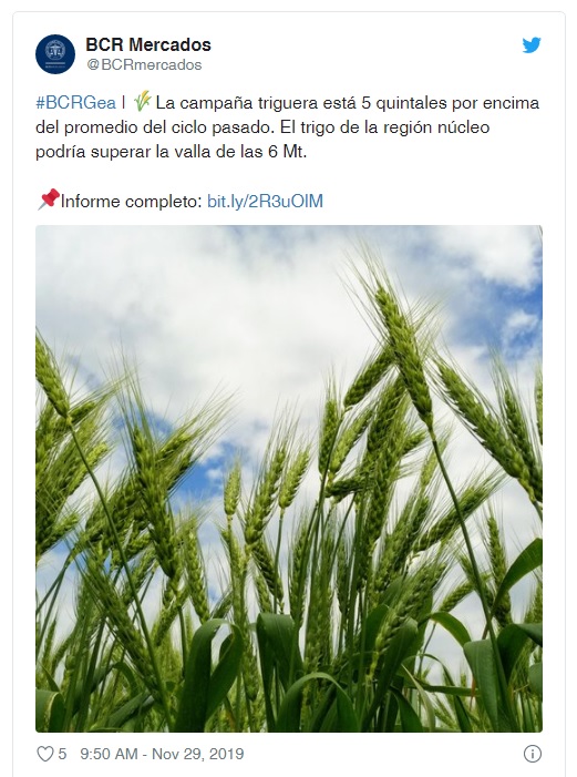 “Si bien fue un invierno con muy pocas lluvias, el cultivo arrancó con los perfiles cargados y se hizo pensando en altas productividades. La excelente fertilización y los controles de enfermedades (en promedio se realizaron dos) están teniendo mucho que ver en estos resultados”, manifestó la entidad santafesina.
