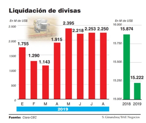 Los cambios establecidos por el Banco Central en la liquidación de commodities a sólo 15 días no generará problemas para el sector exportador que adelantó que no ve "inconvenientes", pero alertó que todo dependerá de las ventas que haga el productor. En agosto la liquidación de divisas fue de US$2.250 millones, un cifra idéntica a lo visto en julio.