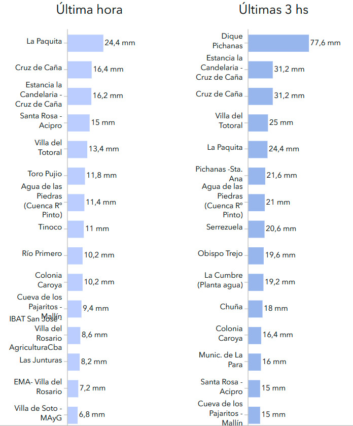 EN LAS ÚLTIMAS 3 HORAS DE LA JORNADA DEL DOMINGO, DE 21 A 24, LAS PRECIPITACIONES «RANKEADAS» POR LA APRHI, FUERON LAS SIGUIENTES.
