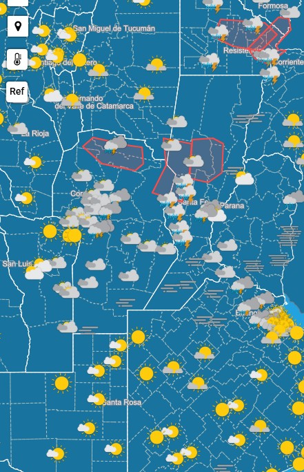 El mapa difundido por el Servicio Meteorológico Nacional muestra para la mañana de esta jornada de miércoles el panorama descripto para Córdoba, y también lluvias y tormentas en Santa Fe, Chaco y el norte bonaerense.