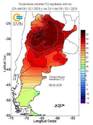 En efecto, según un relevamiento realizado por el observador meteorológico Rafael Di Marco (@meteorafa en X) a partir de datos de las Estaciones Meteorológicas de la Provincia, así quedó el ranking de localidades con los mayores registros térmicos (08/02/2025 hasta las 17hs).