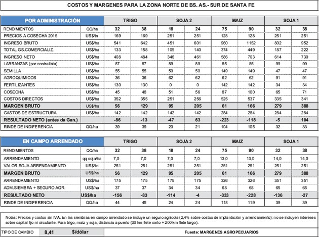 Costos y márgenes para la zona Norte de Buenos Aires - Sur de Santa Fe