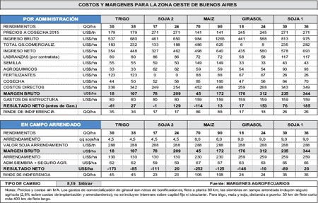 Costos y márgenes para la zona Oeste de Buenos Aires