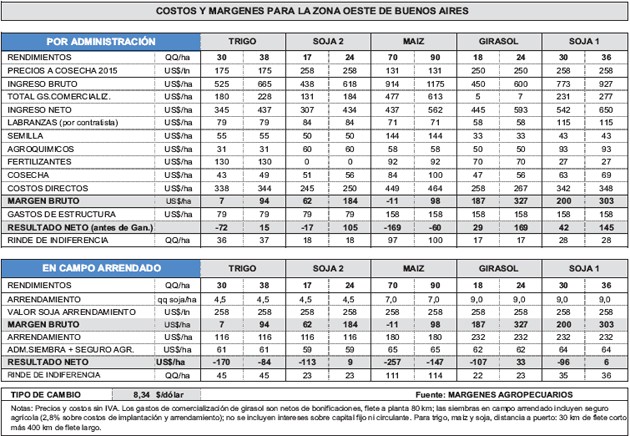 Costos y márgenes para la zona Oeste de Buenos Aires