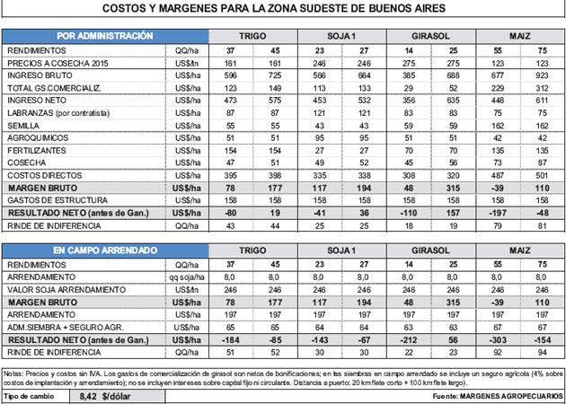 Costos y márgenes para la zona sudeste de Buenos Aires