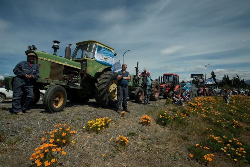 Unas 200 personas se concentraron esta tarde en la rotonda que conduce al aeropuerto de la ciudad, en la ruta 40 norte y la avenida de Circunvalación, con banderas argentinas. Además de los vehículos particulares, se vieron muchos tractores y otros equipos agrícolas en la movilización.
