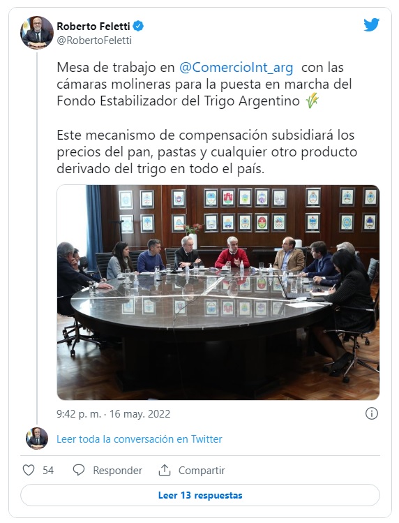 Ahora, reunidos nuevamente con el secretario de Comercio Interior de la Nación, Roberto Feletti, las cámaras molineras plantearon la voluntad de participar del Fondo, si se reconocen algunas particularidades productivas del sector y una mejora en el precio final de la bolsa de harina industrial.